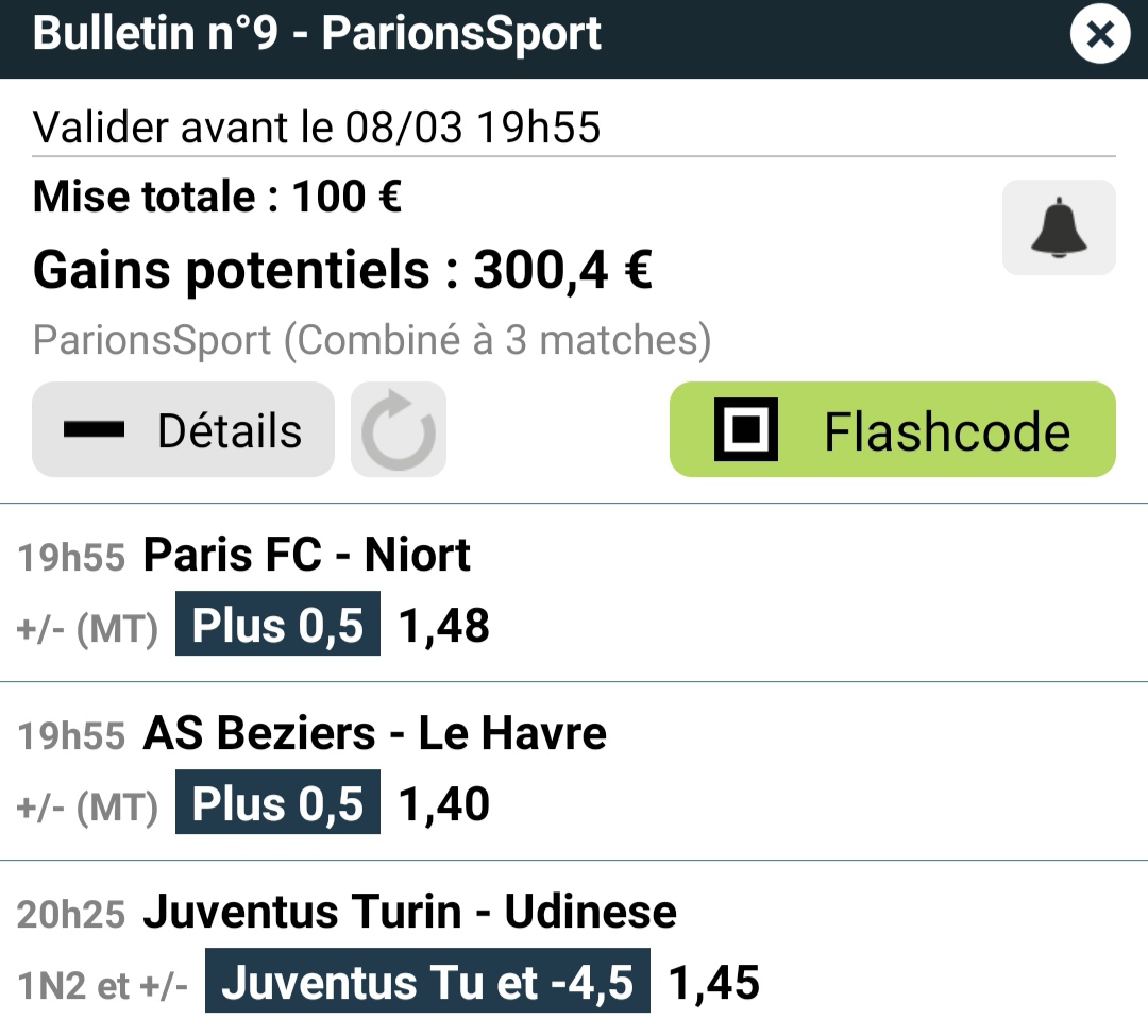 Ci-dessous vous trouverez la liste de nos pronostiques pour les match à venir.